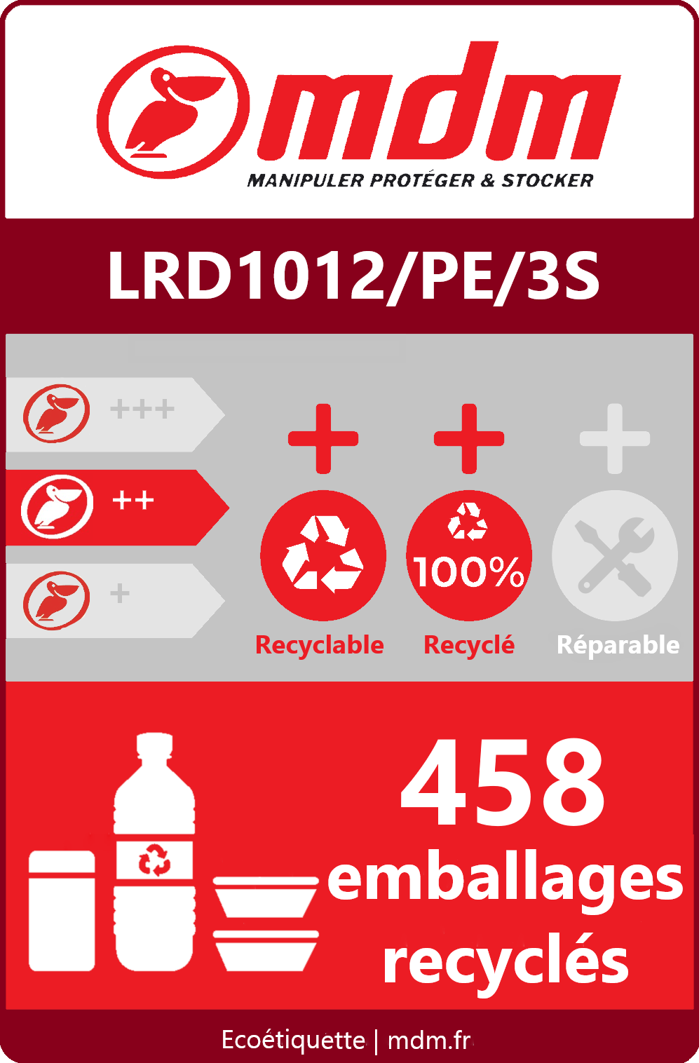 La palette LRD1012/PE/3S résiste aux acides, insectes et bactéries.
